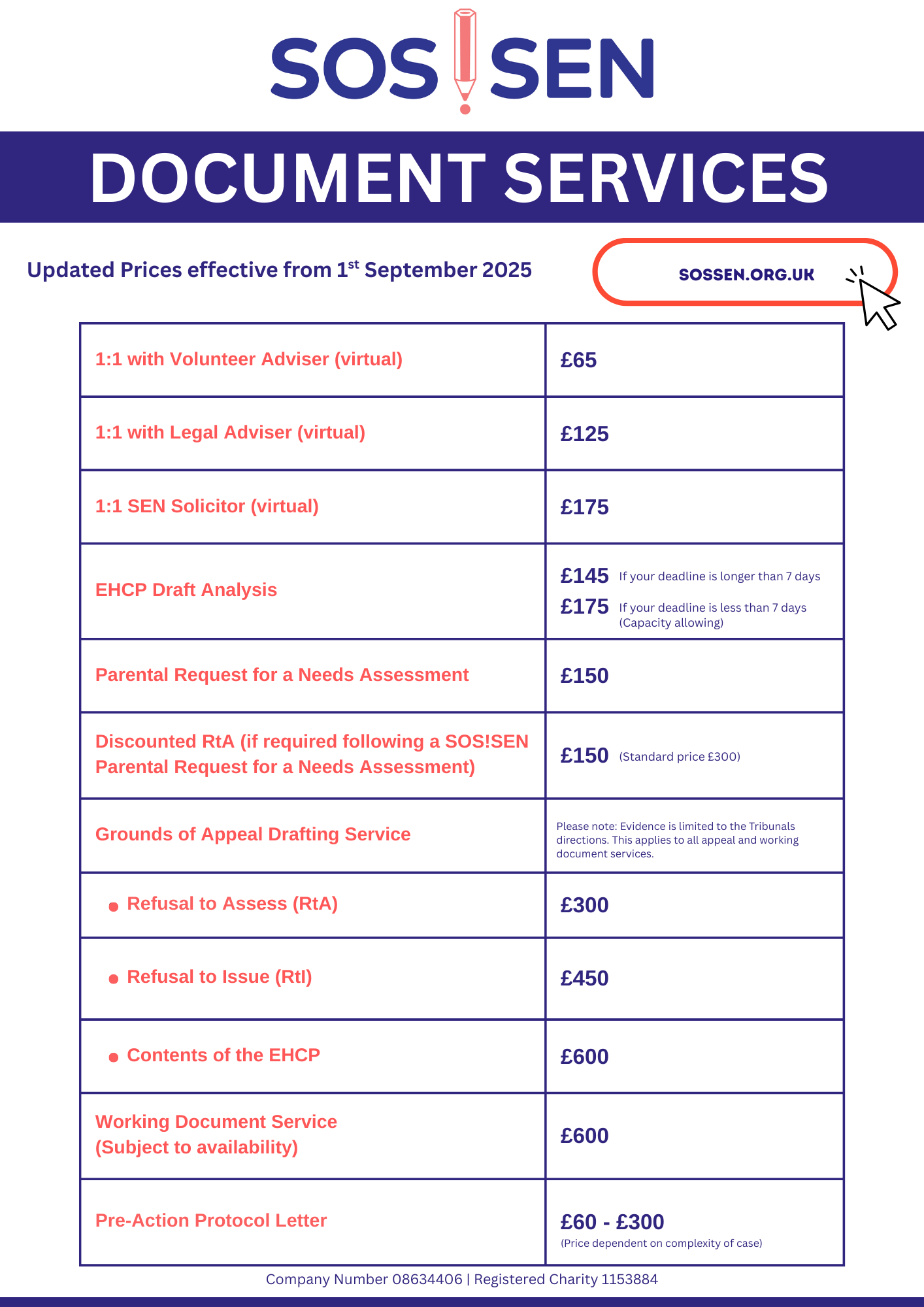 I would like to say thank you to everyone at SOS!SEN for their direction and invaluable expertise, which helped me work through an appeal… Your workshops [webinars] on appealing against the contents of EHCP and SEND Tribunal video hearings gave me the confidence to represent myself, and succeed at a SEND Tribunal hearing, to secure needed provisions for my son…